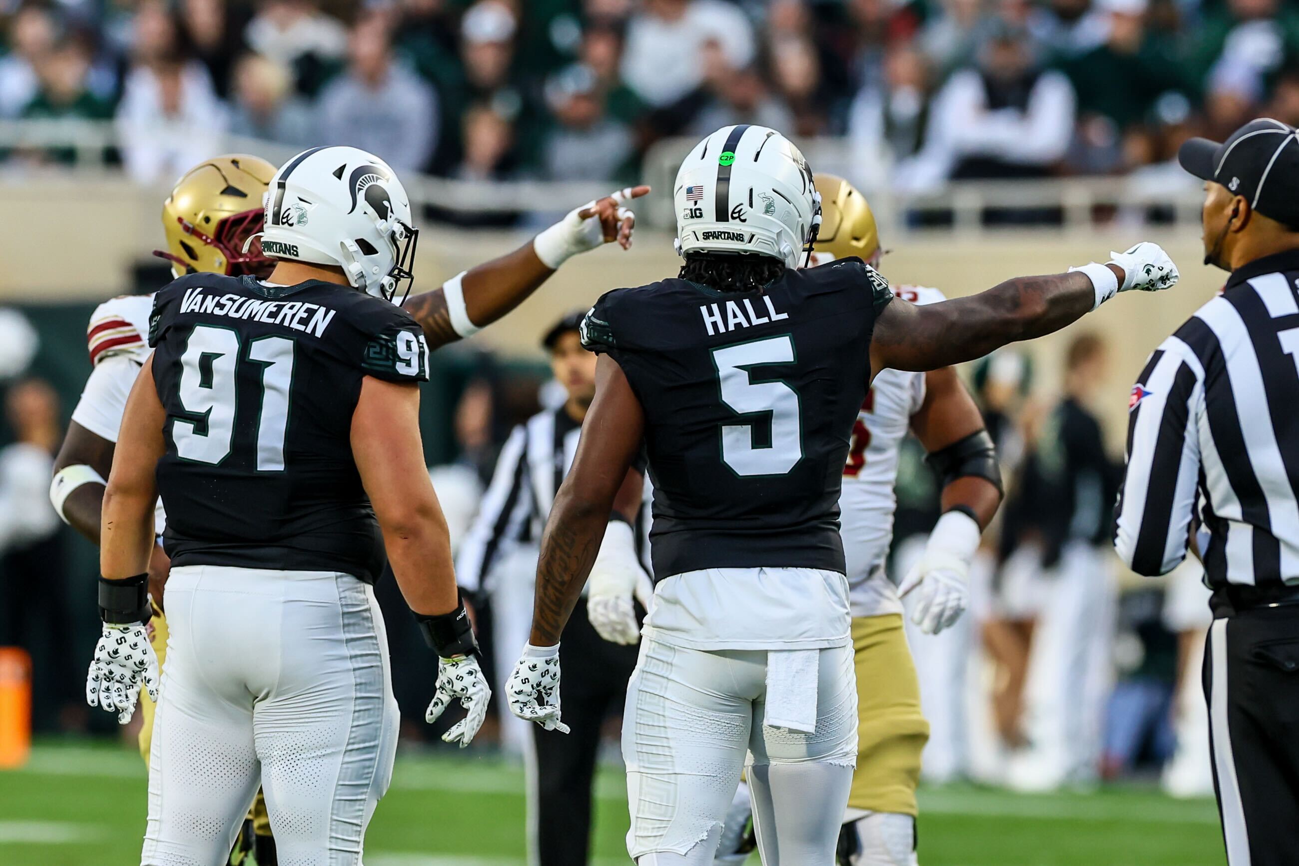 Two Michigan State players - junior quarterback Aidan Chiles and junior linebacker Jordan Hall - earned Big Ten offensive player and defensive player of the week, respectively, in the Spartans 42-40 double-overtime victory against the Boston College Eagles this past Saturday.