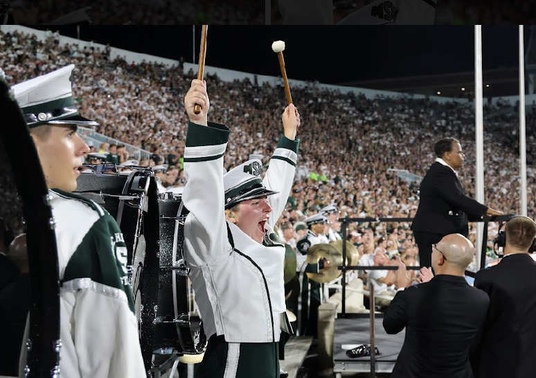 Her path started long before she ever put on the green and white. Wesley began as a snare player and, starting her sophomore year of high school, trained specifically for the MSMB audition with her mentors, Brad Novak and Yates McLaughlin. The three of them focused entirely on Michigan State’s marching packet, working until she had every detail committed to memory.