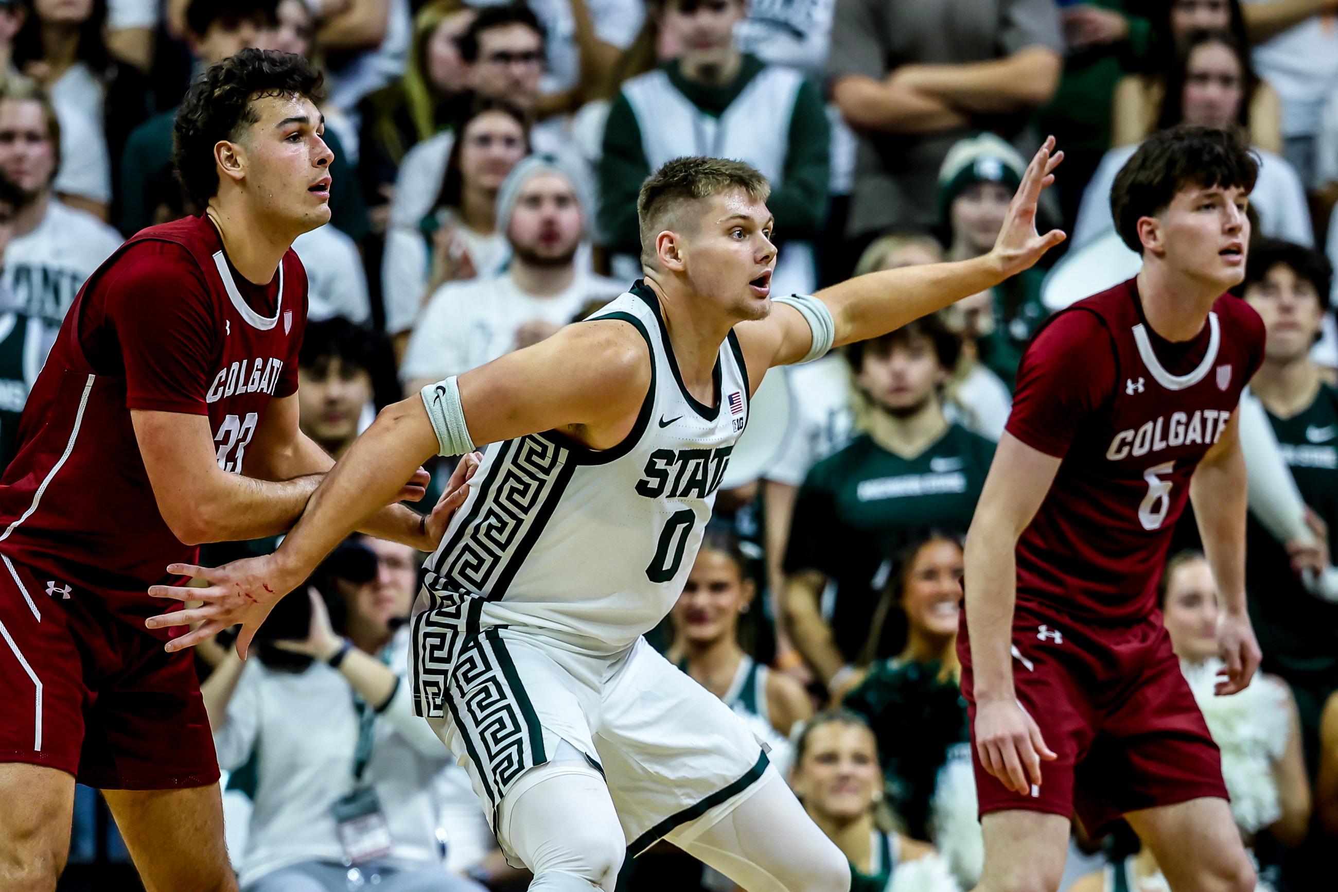 Michigan State men’s basketball began its regular season last night in a recognizable fashion - with a slow start against Colgate, from the Patriot League. No Spartan player ended the first half in double digits as MSU went into the locker room only leading by three, 37-34.