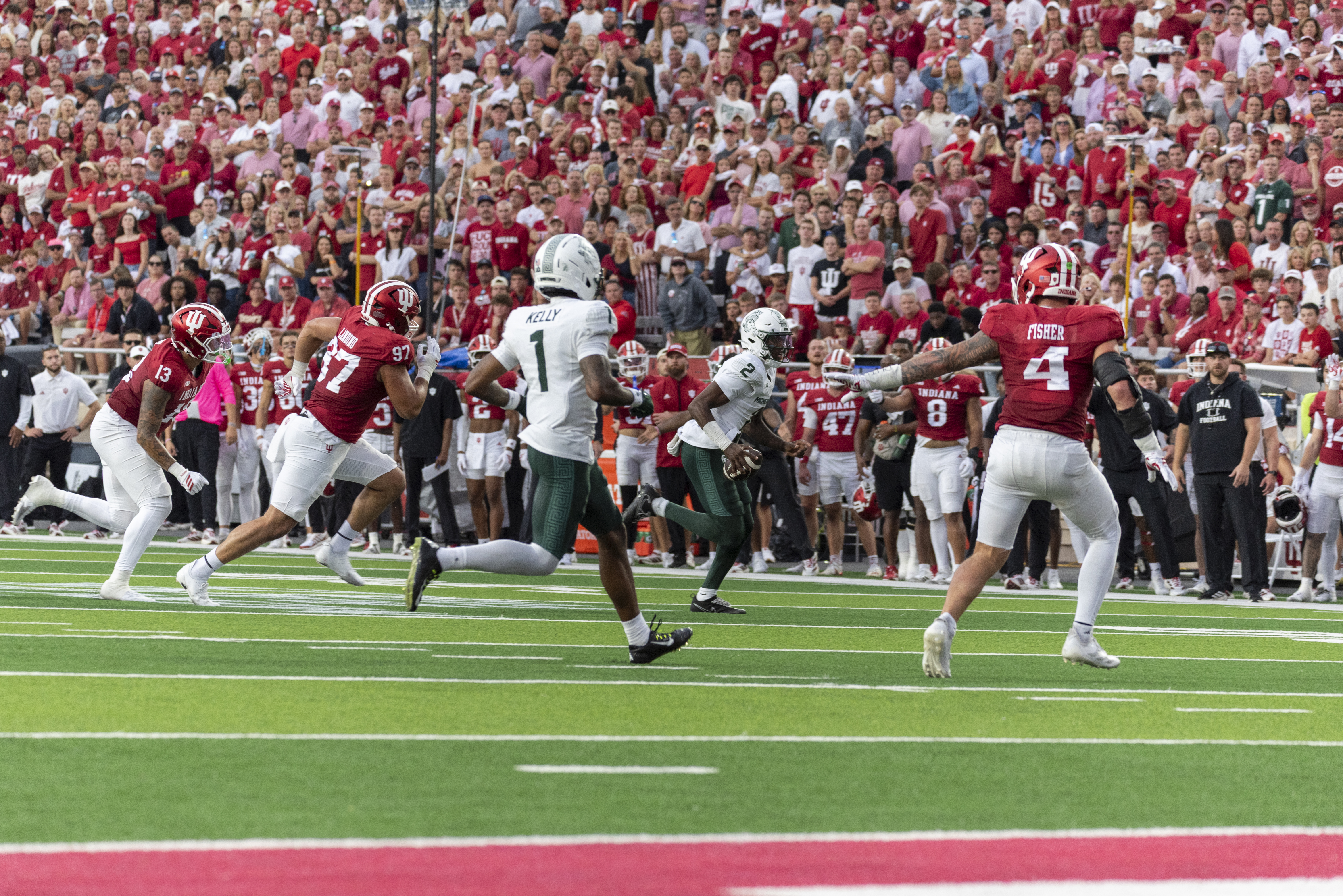 However, it was all Indiana from there as the Michigan State defense had no answers for quarterback Fernando Mendoza and the Hoosier offense. IU scored touchdowns on each of its first five possessions and the MSU offense ended with just the aforementioned 13 points on the scoreboard.