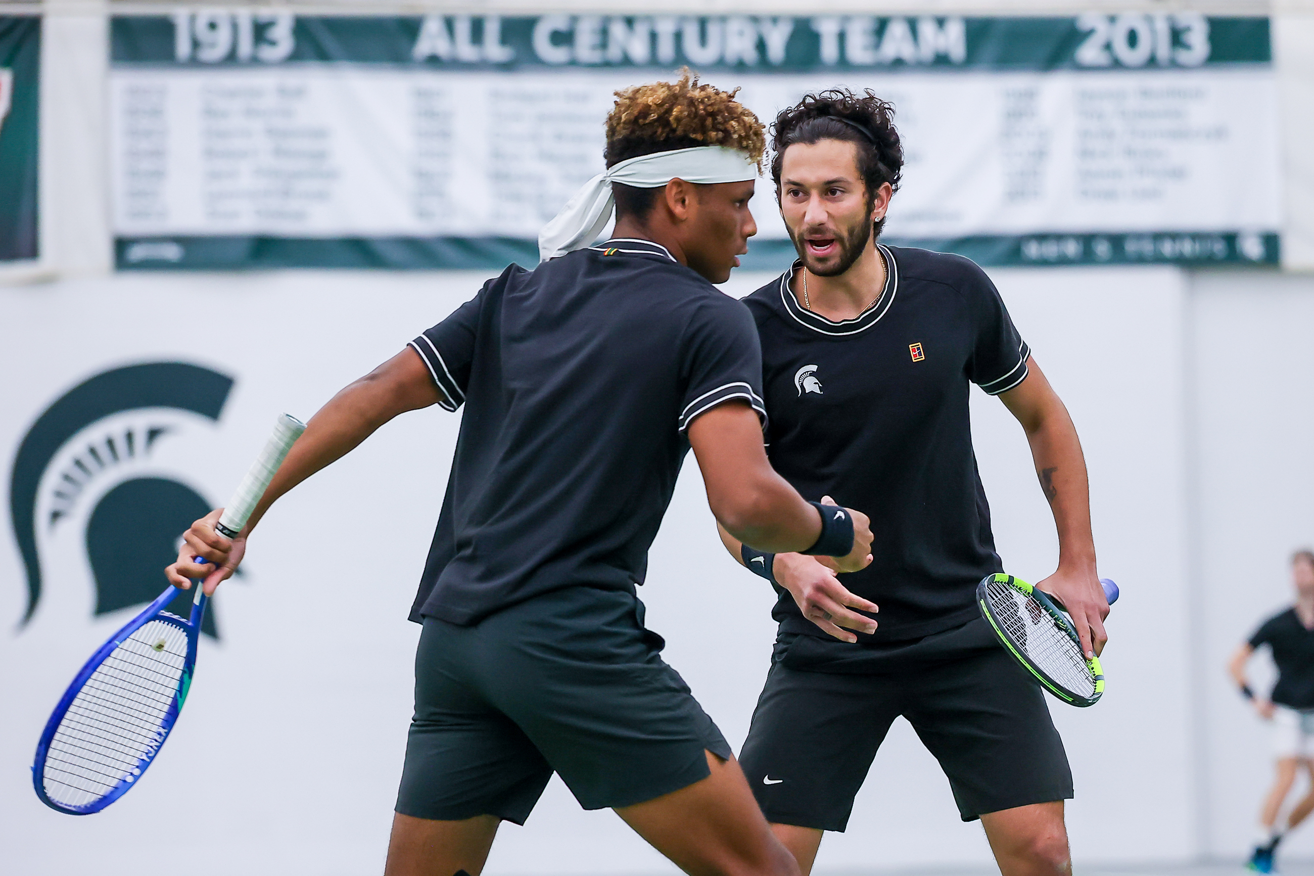 In doubles competition, Michigan State opened with a win at No. 2, as Baris and Matthew Forbes defeated Nour Fathalla and Stefan Simeunovic, 6-3.