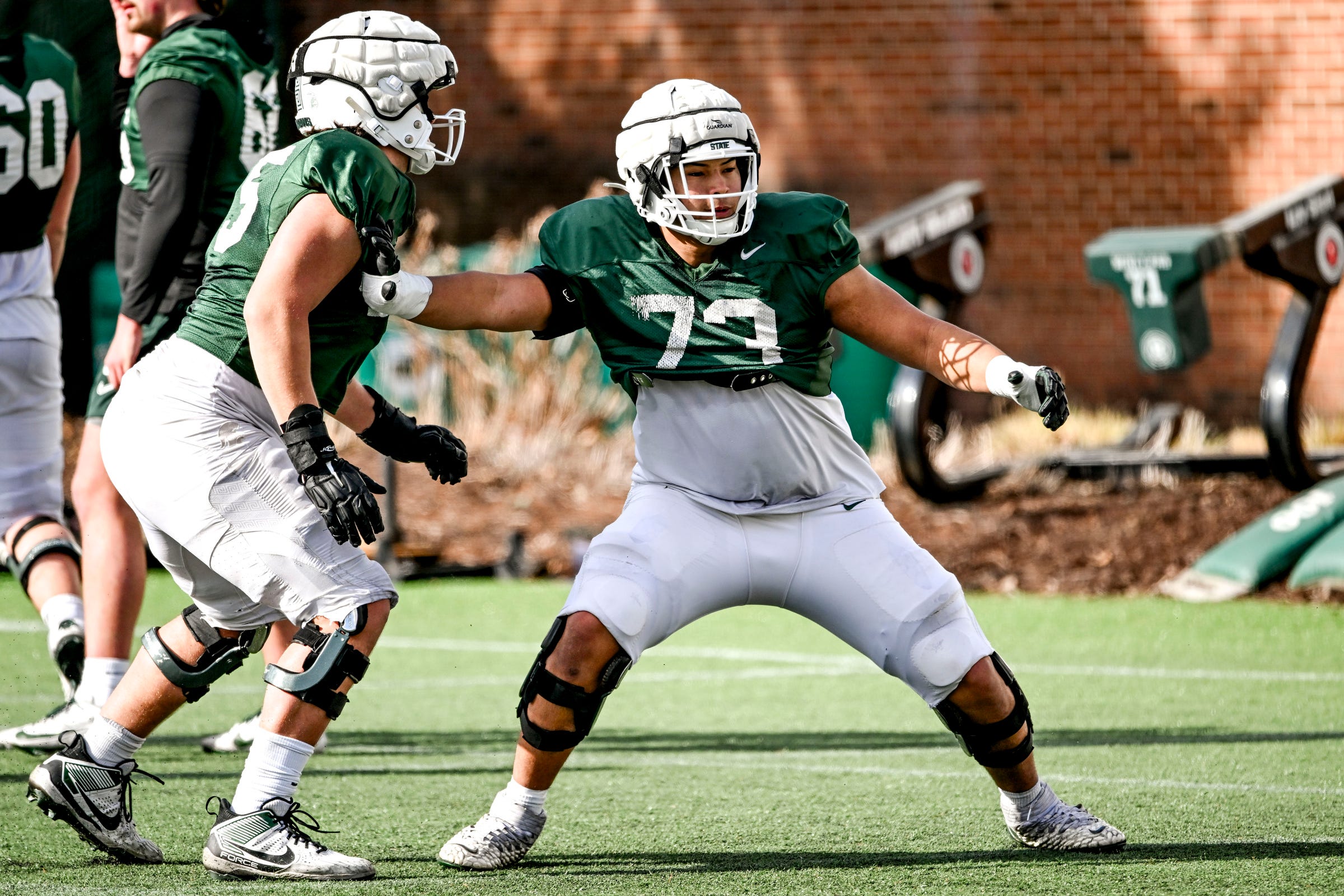 Former four-star tackle remains part of the Spartans’ long-term offensive line plan