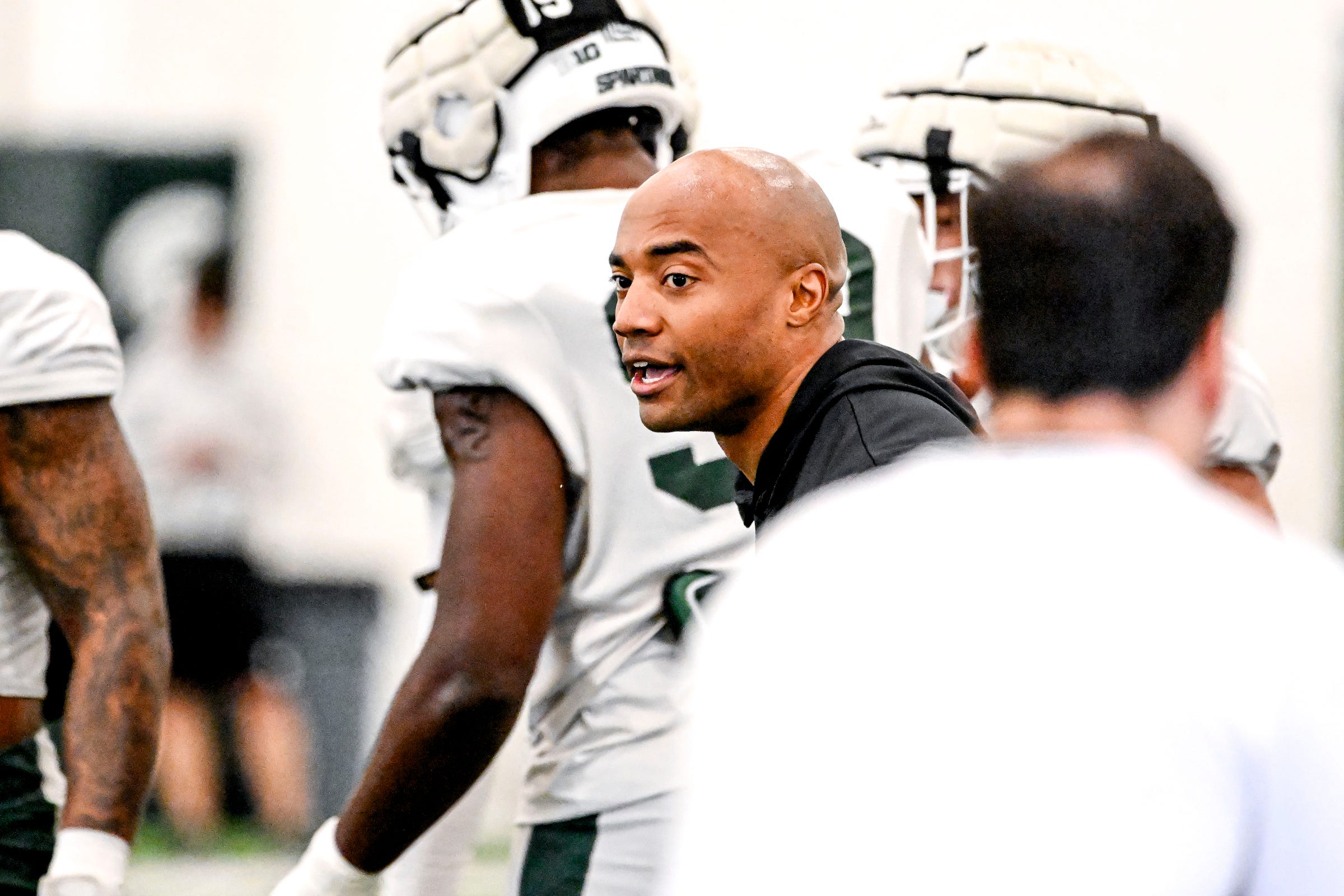 Michigan State DL coach Winston DeLattiboudere III did not want to coach, at first. Now he is one of the most energetic coaches on every staff he works for.